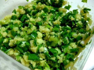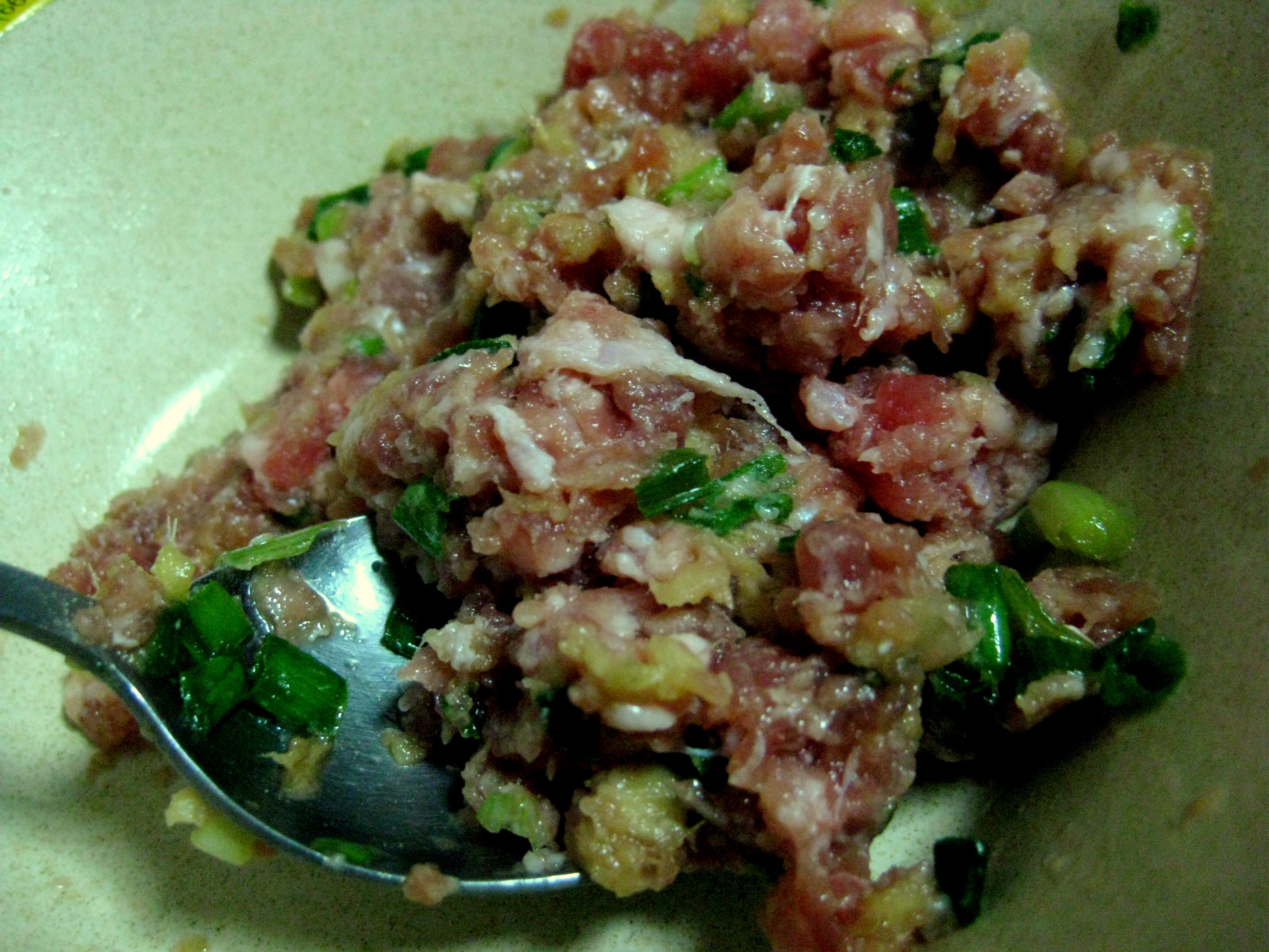Pork filling. Seasoned further with shao xing wine, salt and white pepper