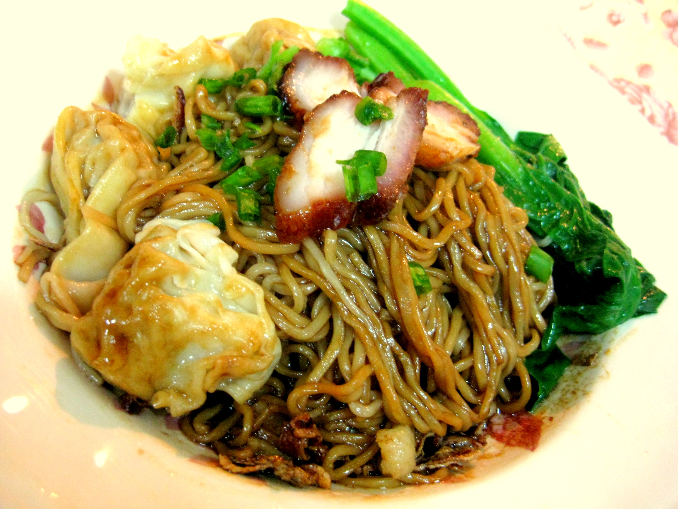 Boil the kampua noodles for about 2 minutes, I also put the wantons in the same pot to boil until they start to float. Blanch some choy sum (just to up my veges intake, as it’s not commonly served with kampua mee). Toss the noodles and wantons in the sauce and garnish with wantons, choy sum, charsiu (I used store bought ones) and some scallions.