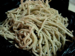 These noodles were from a kopitiam that we always visit when in Bintulu. The stall owner made them herself. When cooked, it has a slightly smooth and softer texture than that of Kolok Mee.