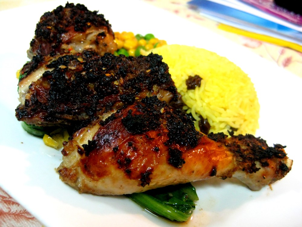 The Jerk seasoning has 2 principle ingredients: allspice berries and Scotch Bonnet Peppers. It can be applied to different proteins too, such as pork and lamb, even tofu! I have not been able to find Scotch Bonnet, nor Habanero peppers so I had to use Chili Padi instead. And since I served the chicken with yellow rice I supposed this is slightly “Malaysianised”.