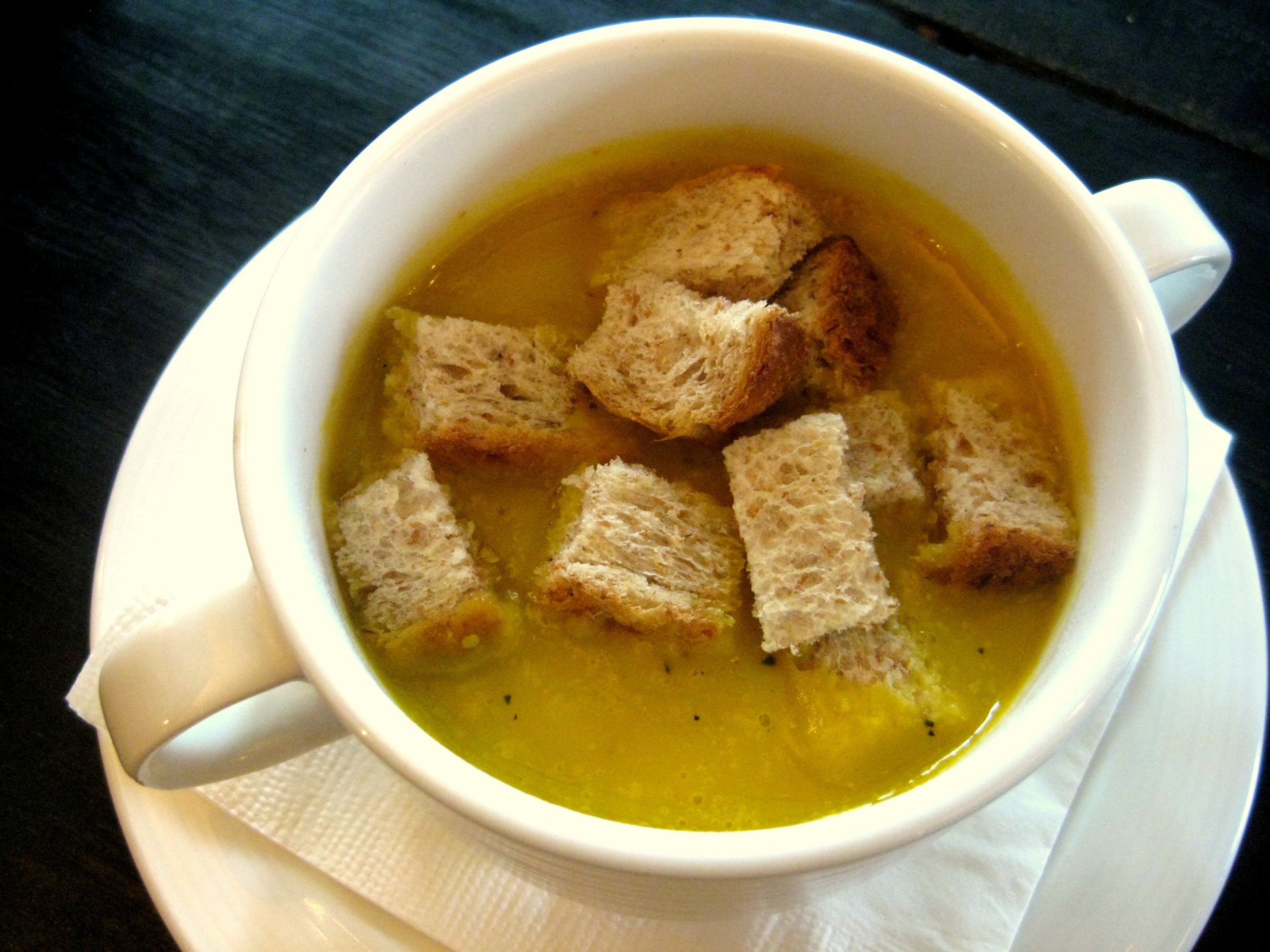 For the entree, you get a Roasted Pumpkin Soup with Garlic croutons.