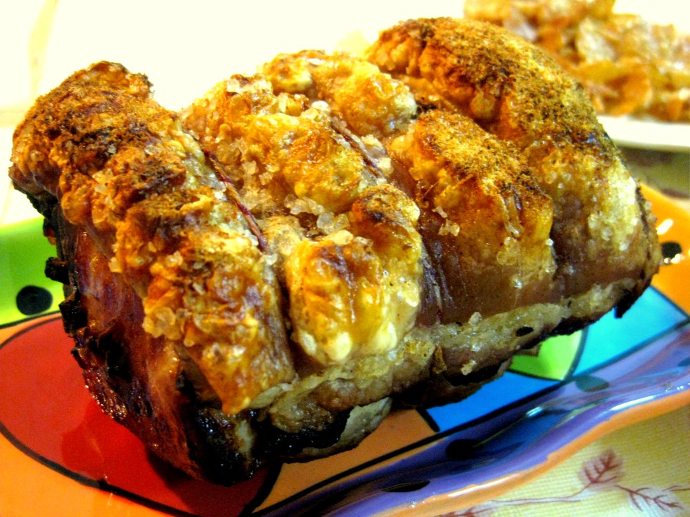 The rolled pork loin was simply marinated with hoisin sauce, 5 spice powder, salt and pepper. The crackling made perfect by drying the skin thoroughly and salting it. We fought for the crackling and Frank nearly finished all the meat. It was a good party indeed.