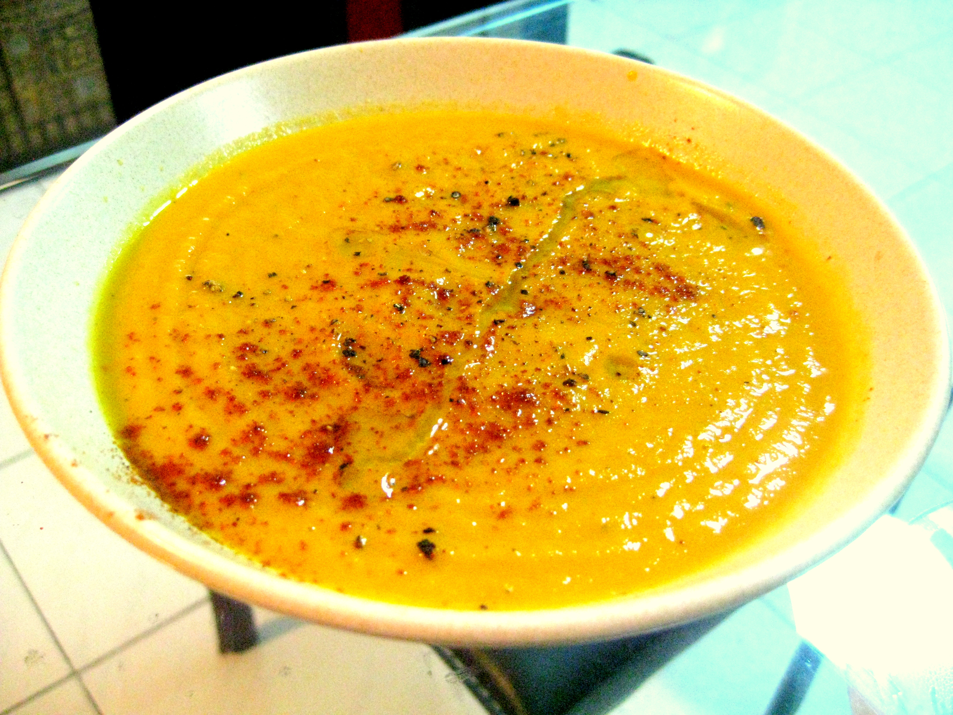 Never thought carrot soup could be interesting. Tried it in many places but this one is the best ever. Nice touch with the little sprinkle of spices. Subtle and not mad. Just that nice little kick that makes a cracker out of a bowl. Want this again soon. Liked very much.