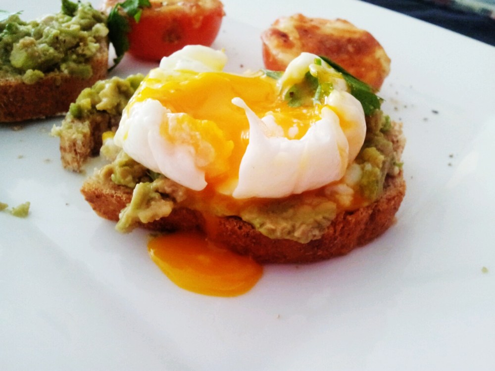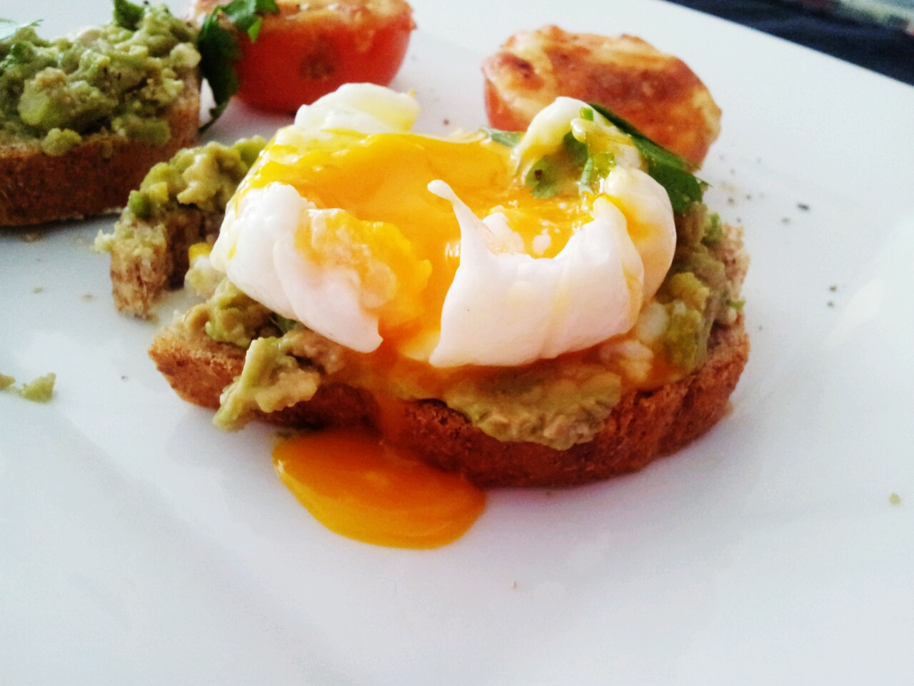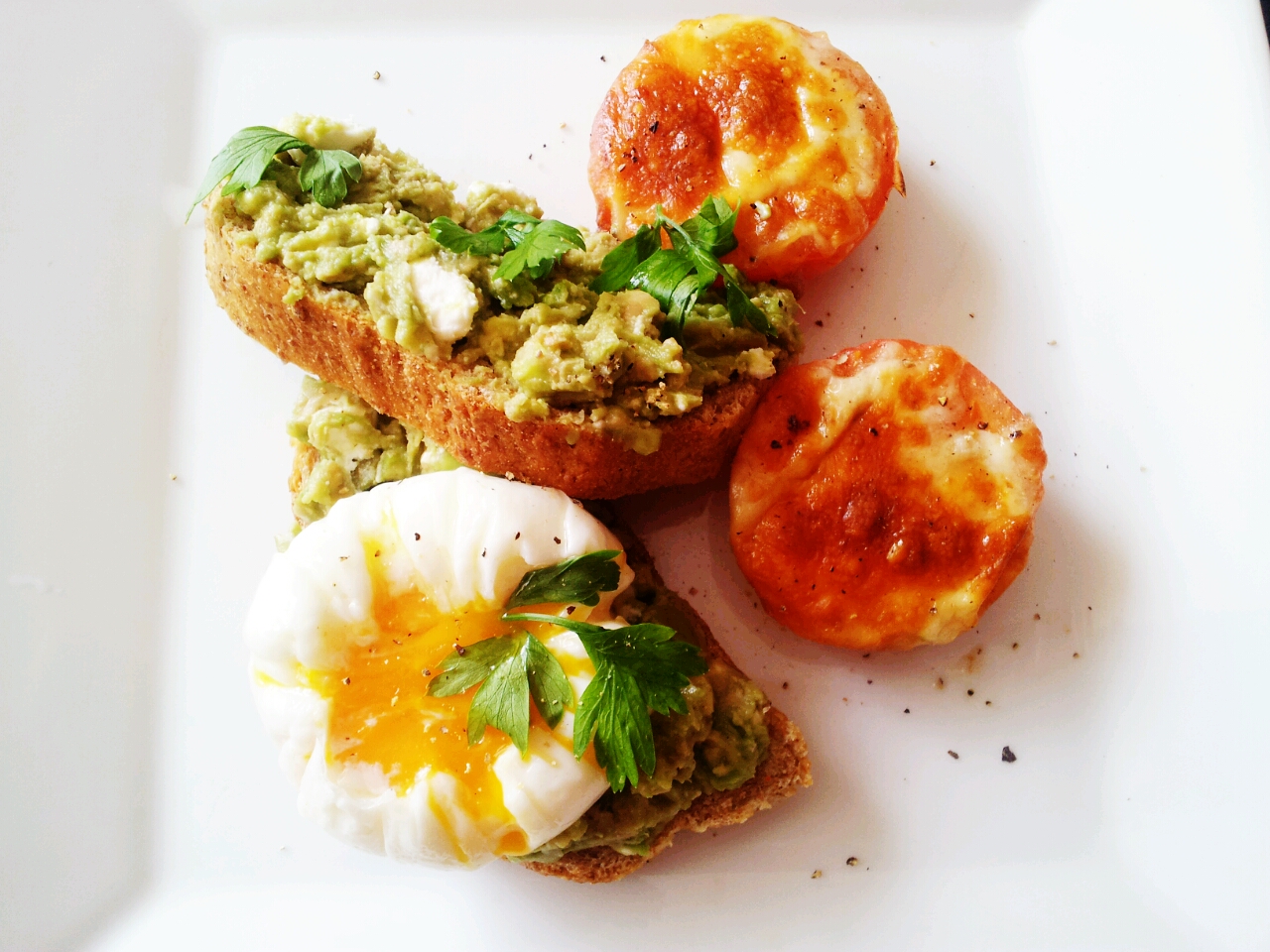 Smashed Avocado and feta on toast, Grilled tomato with Mozzarella/Parmesan, Poached Egg with Truffle oil