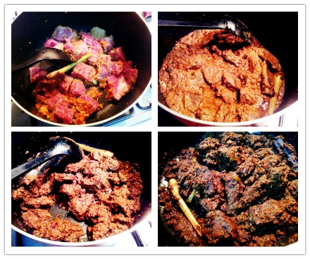 I thought I’d use the opportunity to finally conquer the ultimate Malaysian/Indonesian dish: Beef Rendang. This has been on my to-do list for a long long time. For Raya’s sake, I finally purchased all the ingredients and set myself for a long day of cooking (night, rather). Despite the long and almost intimidating list of ingredients, it actually is not all that difficult to make, as long as you have the time. I started mine in the middle of the night. But then again, I’m just weird. Heh.