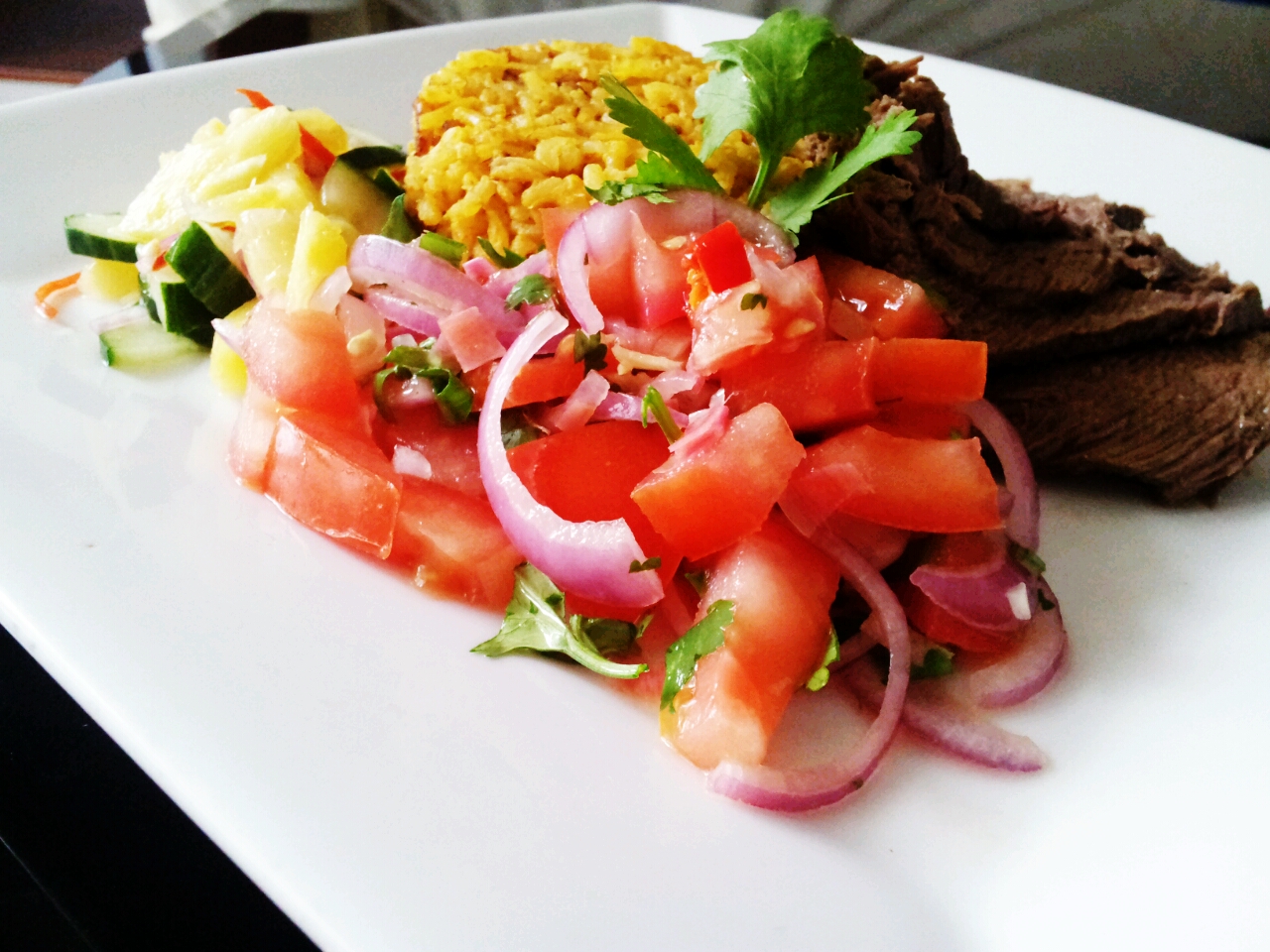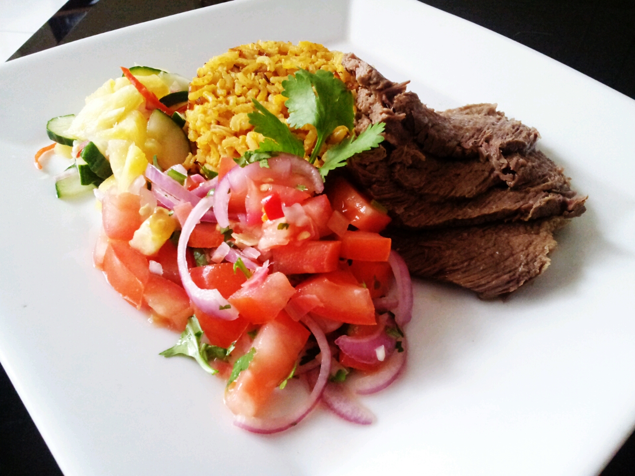 My rice takes on a more yellowish hue because I was a little too generous with the turmeric. But the verdict? I love the combination of flavours! The rice is aromatic with complex flavours, the beef was so tender it falls apart with a gentle probe.
