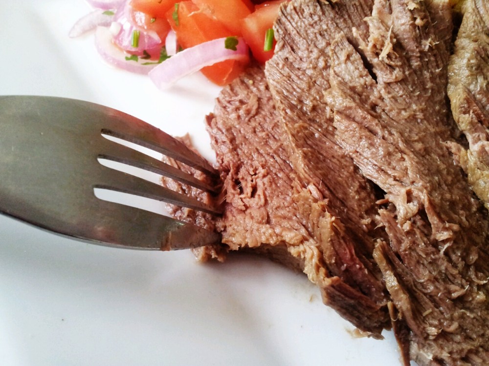 Once the beef is cool enough to handle, cut into slices.