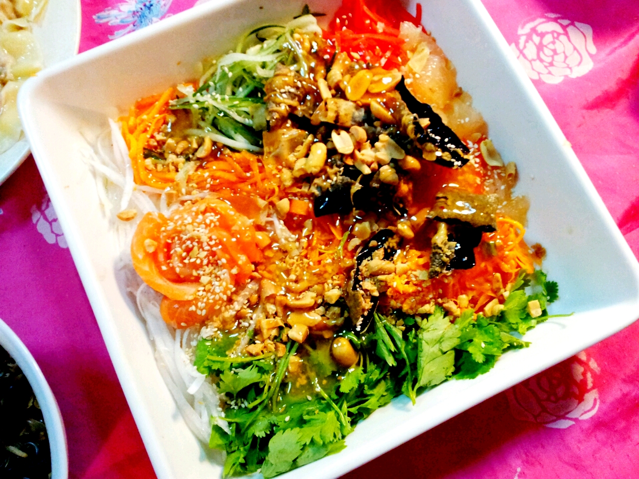 This is a dish commonly enjoyed on the first day of Chinese New Year for those who practise Vegetarianism regularly. It’s basically a vegetables stew with Cabbage (Wombok), Shitake Mushrooms, Wood Ear Fungus, Carrot, Lily buds (Golden Needle), Fatt Choi (Hair Moss, freaky looking stuff for the uninitiated), Sweet Potato Noodles cooked with Taucu (Soy Bean Paste).
