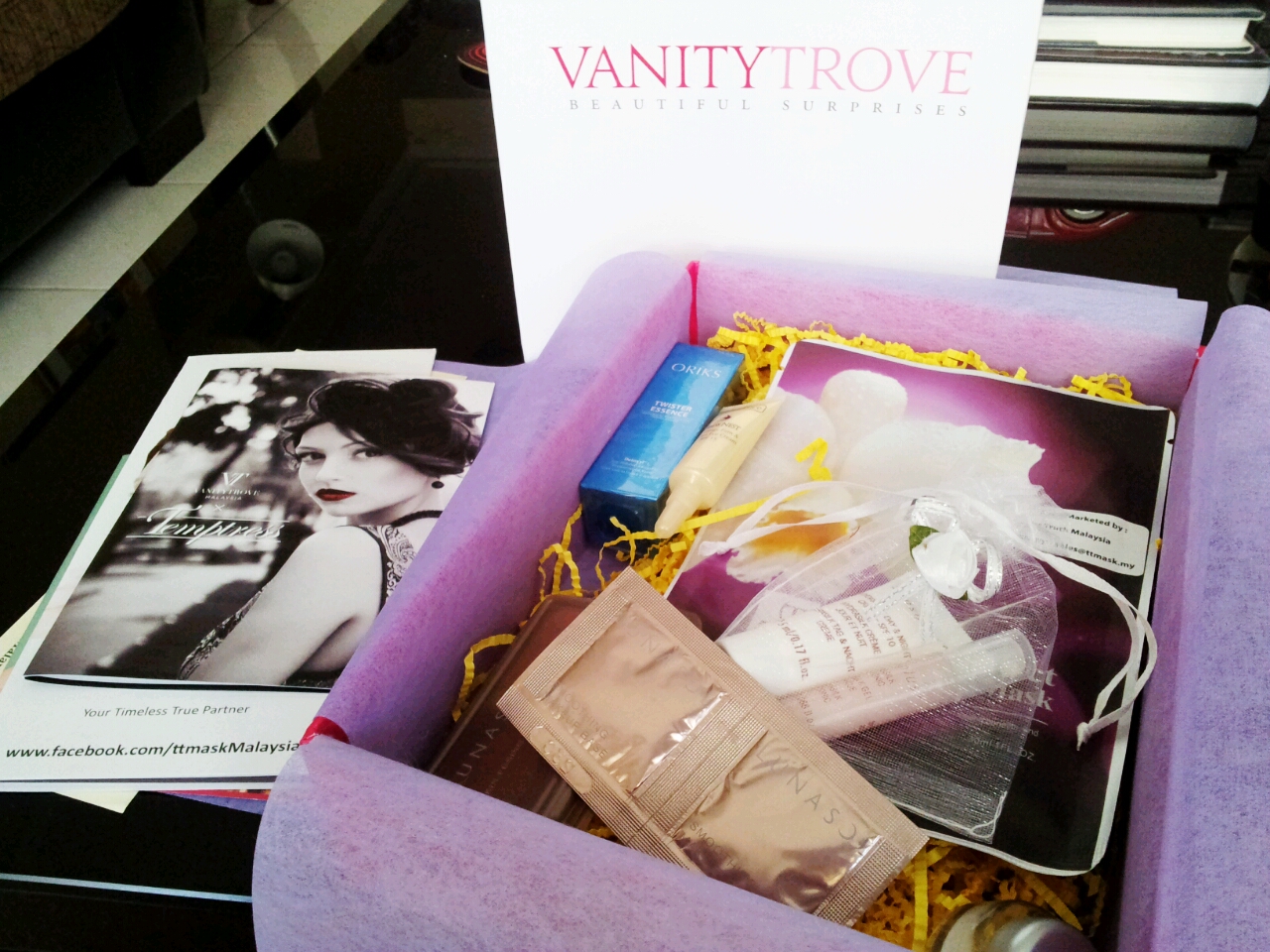Several weeks ago, I received an email from Vanity Trove asking me if I would be interested to check out the March Edition of their beauty box. Well, I’m a not-so-closet beauty addict and love trying out new products without having to buy the full-sized items straightaway. Of course, I had to say yes!