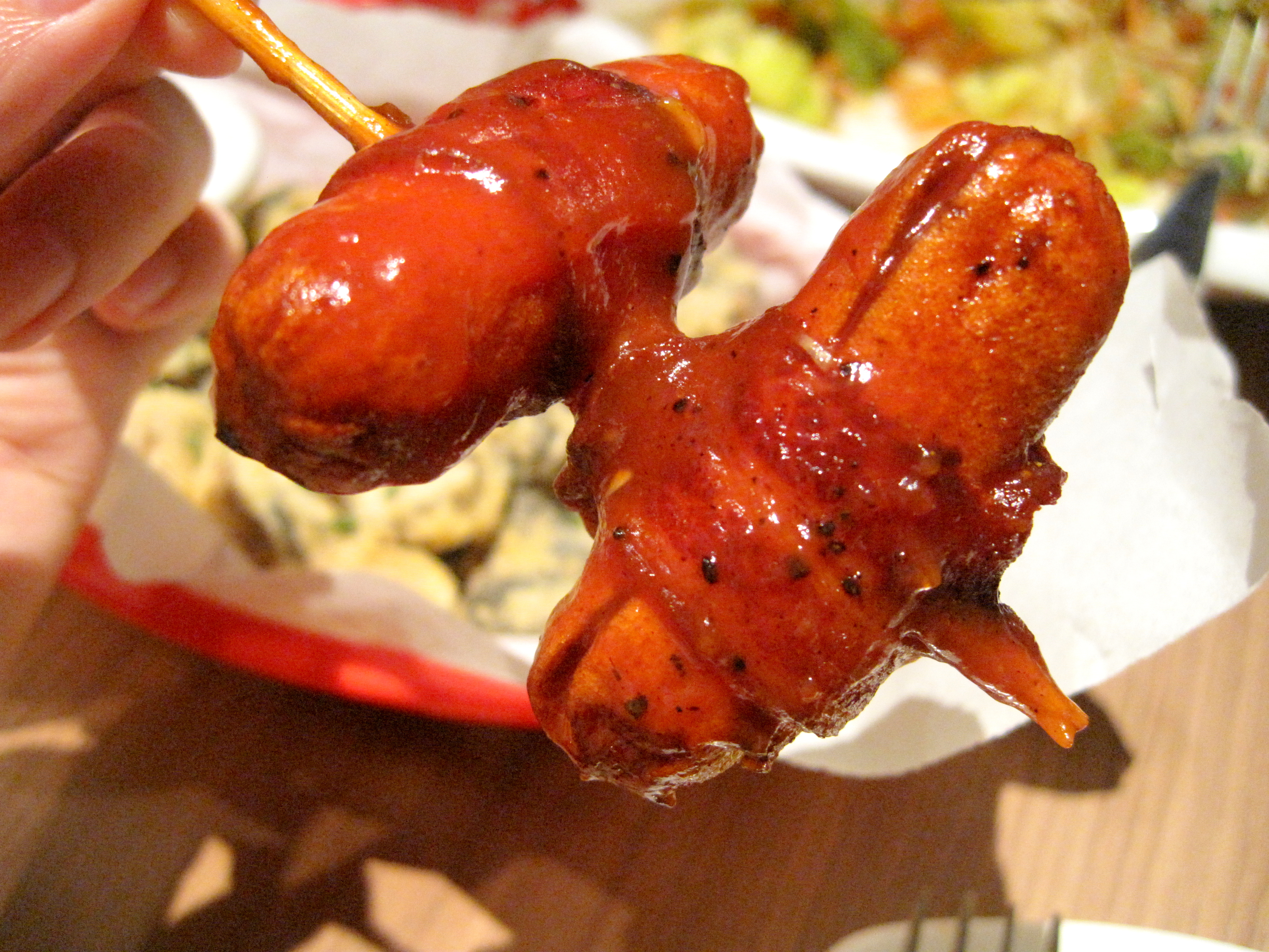 After having Pigs in Blankets in Sid’s Pubs, I find very few places can rival their version. But with the Bourbon-fueled sauce (possibly a little too much Bourbon, not that I’m complaining), these tasted very good indeed. The sweet sauce balanced out the saltiness of the bacon wrapped morsels. The only thing I didn’t like was the mouth feel of the sausages as they were of the cocktail variety, thus the skin is a bit thicker.