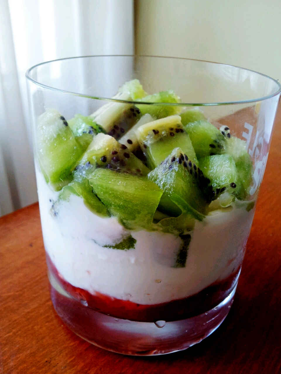 The simplest way of eating Kiwifruit is just cutting it in half and scoop the flesh out with a spoon. But there are many ways you can use this powerful fruit. Bear in mind though because the actinidin, you can’t use it in recipes with dairy products unless you will be consuming it within minutes. Here I layered homemade strawberry jam (strawberry Jam recipe below), greek yoghurt and diced Kiwifruit for a healthy breakfast (or even dessert after dinner).