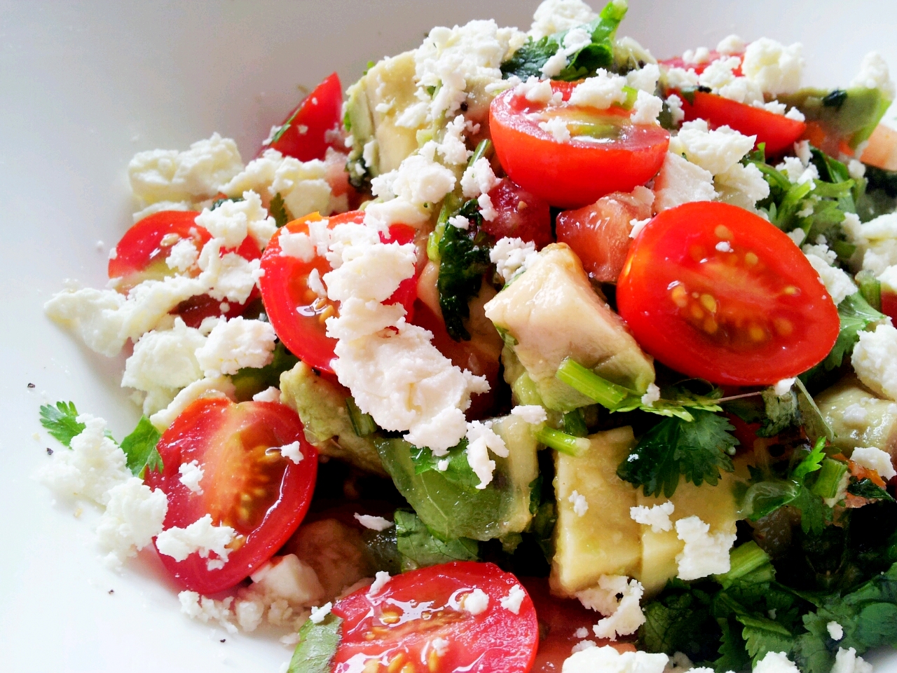 Kiwi Salad with Tomato, Avocado and Feta Cheese (serves 2 or 1 as a main meal)
