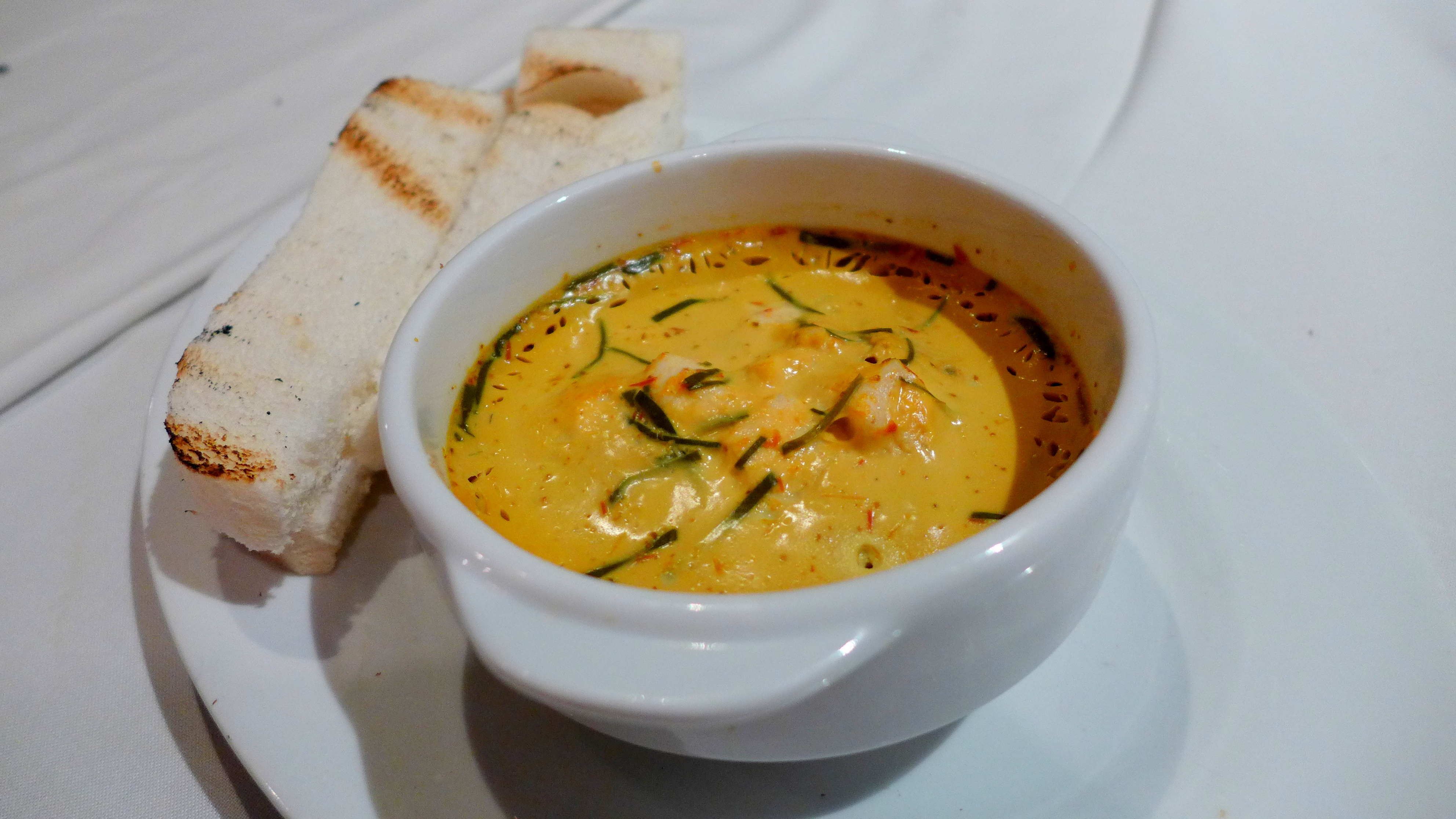 Immediately, I thought that this would not be good because the top looked exposed and dry, and the traditional banana leaves method is supposed to keep the fish mousse (if you will) aromatic and moist. And my suspicion was right: It was bland, and I couldn’t bring myself to have a second bite. The bits of seafood didn’t help either. The bread on the side? Stale and tired looking and tasted horrible when paired with the Otak Otak. Let’s hope it doesn’t get worse from here.