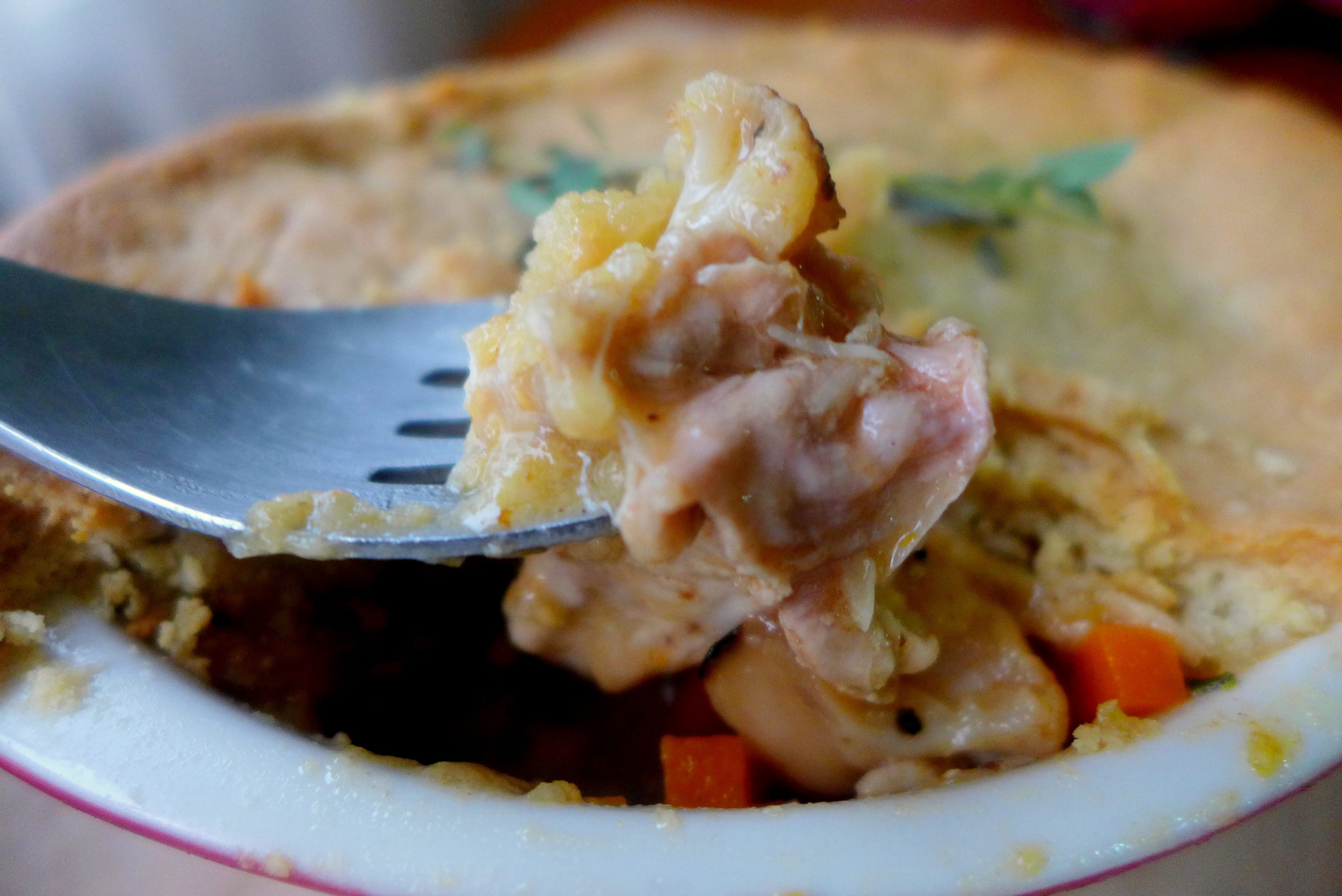 Since I started trying to eat Paleo, I have kinda stopped making my own pastry. My flour section has been abandoned apart from the occasional use of almond meal. However, for this pot pie I tried a pastry using entirely almond meal and was pleased that the pastry held together pretty well. It does have a different texture compared to gluten version, and goes a bit crumbly when you poke it, but fortunately the taste is great. Most important it is delicious with the comforting filling.