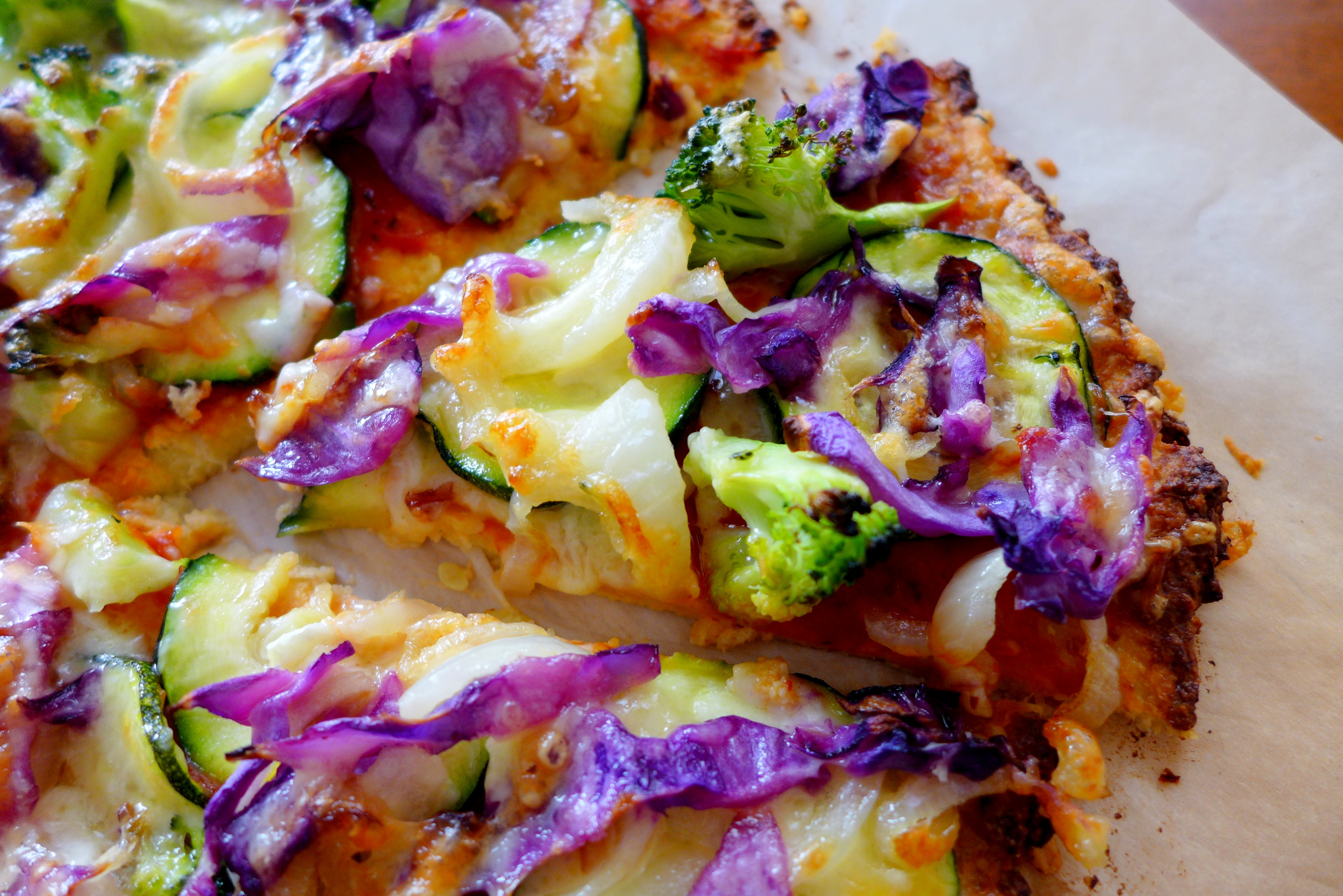 I’m starting to think that I’m eating way too much cauliflower. I’m using it as rice, replacing potato in hash, faux-potato mash, and even faux ‘English Muffin’, while at the same time I also quite like it as a side dish anyway. But I think this recipe might just be the ultimate as it ticks 2 important boxes: Frank’s favourite food, and making unhealthy food healthy. That’s right, I’m talking about Pizza!
