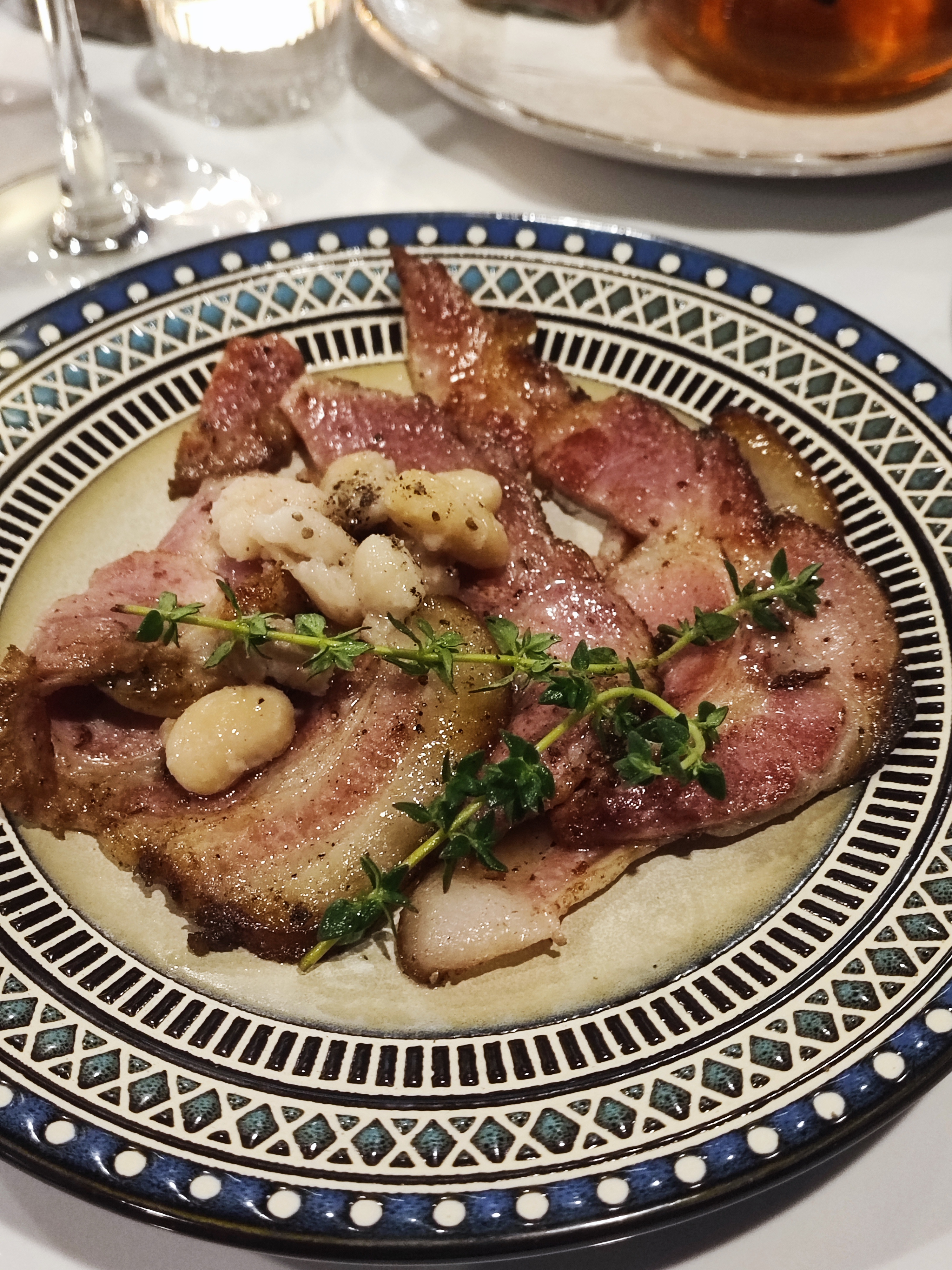 We chose Paprika and Spiced Rub Pork Bacon which came perfectly cooked with just the right ratio of meat and fat. Being cured meat, this can be on saltier side for some but great pairing with wine or beer. A sprinkle of Cannellini beans is a cute touch too.