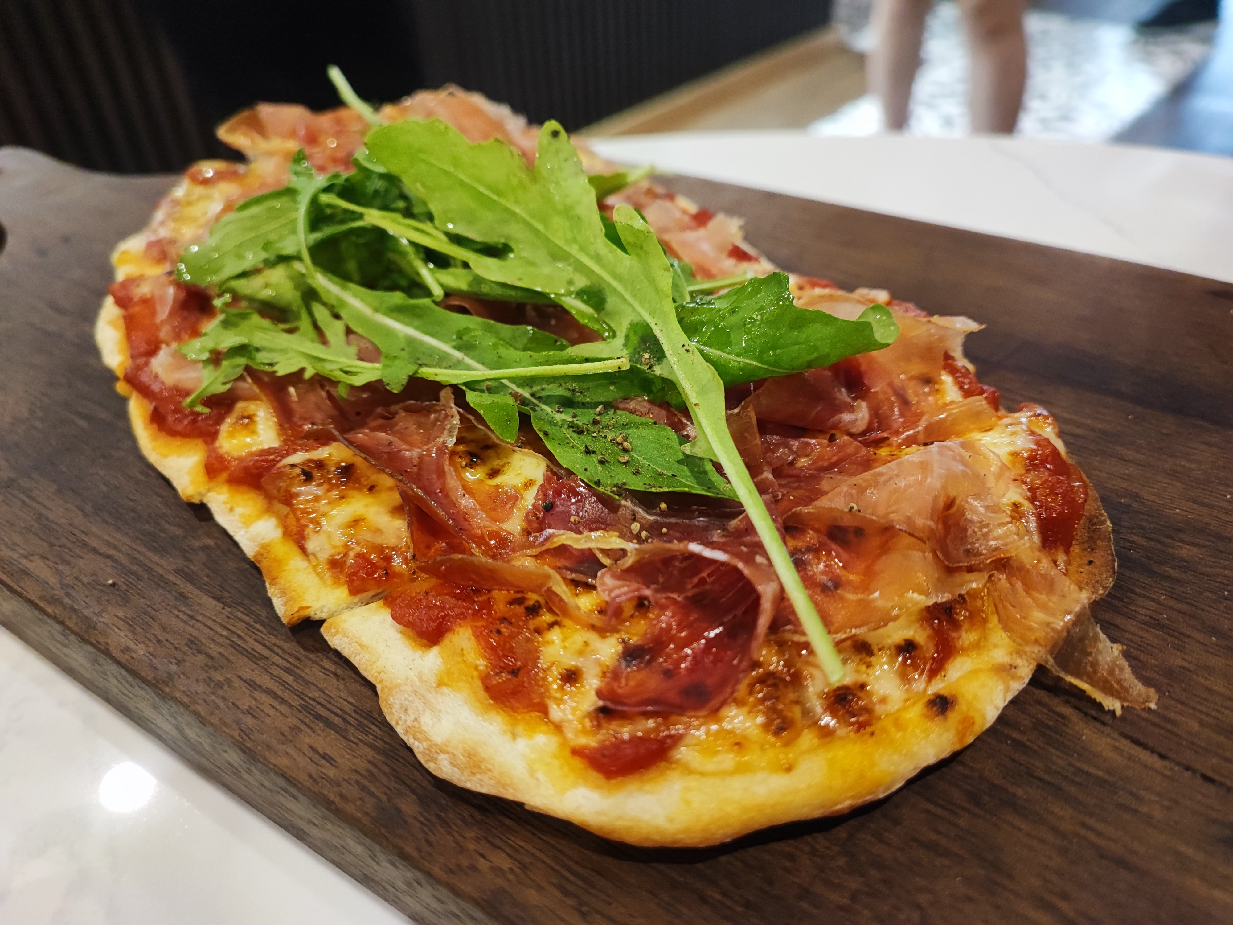 We ordered the Jamon Serrano pizza and it comes with freshly made tomato sauce, just the right amount of cheese and covered in Jamon! The thin crust has a nice crunch to it but what I did may be criminal to others as I only eat toppings off pizzas! The chili oil is fabulous with it by the way, clever addition.