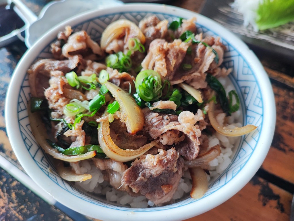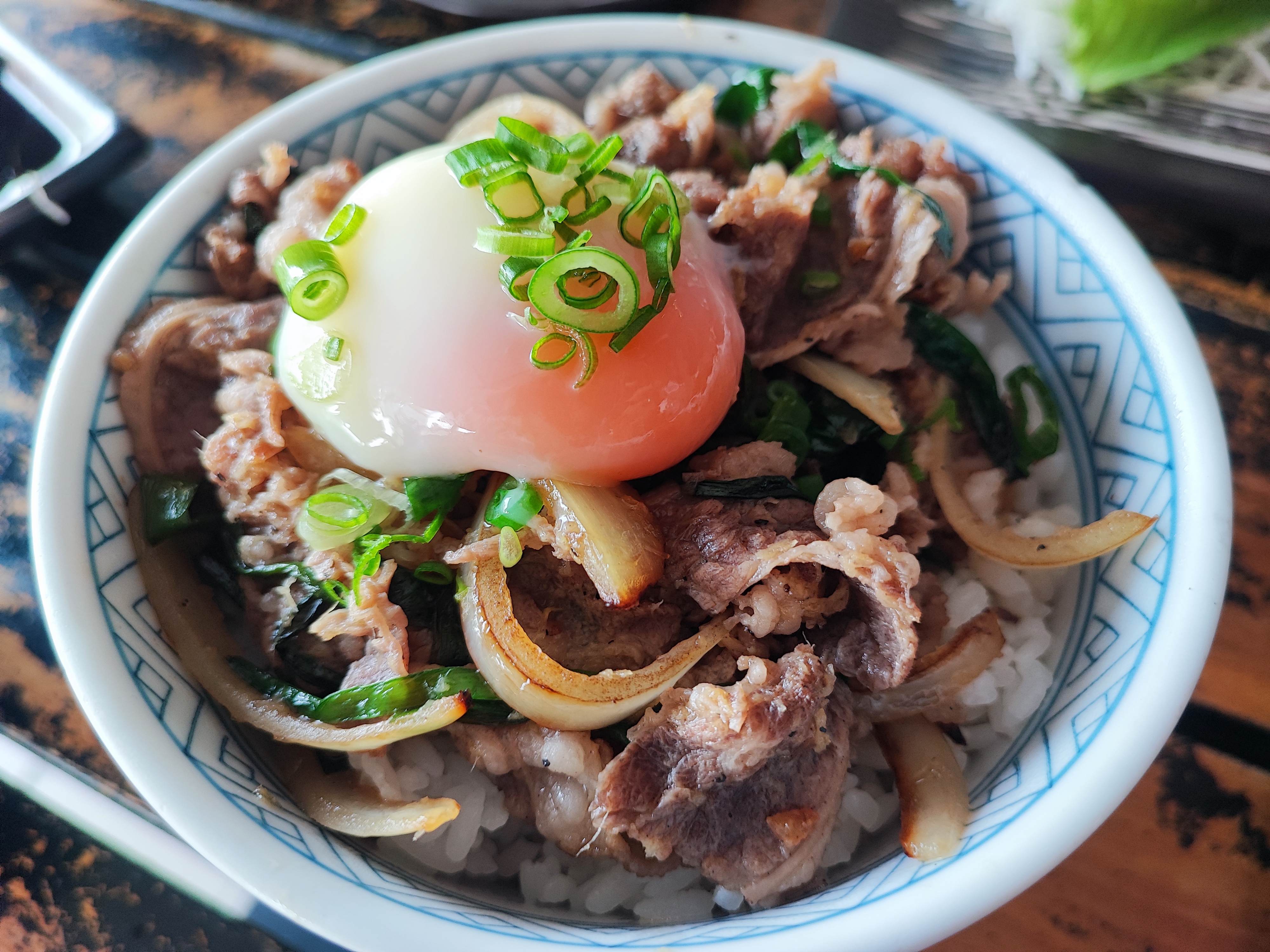 Instant upgrade of the dish! They do this quite well here with tender beef and just enough seasoning. Of course, we committed a crime: we couldn’t finish one portion of rice between the two of us. But it doesn’t mean that it’s not good, we just choose not to consume too much carbs.